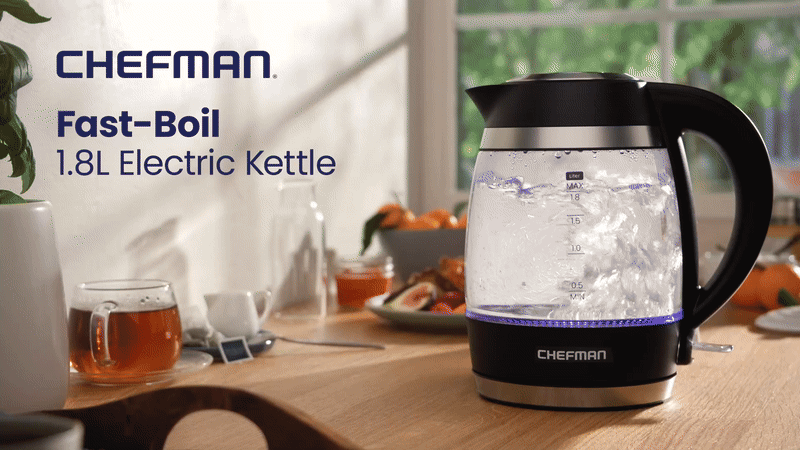 Chefman 1.8L Electric Kettle – Rapid Boil, BPA-Free Glass & Auto Shut-Off